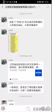 為做好新冠肺炎疫情防控,打贏這場阻擊戰(zhàn),江蘇權(quán)正檢驗檢測有限公司于1月30日起,即開始關(guān)注疫情防控的重點指標(biāo):員工在手機(jī)端每日填寫個人體溫、有無癥狀及出行軌跡;同時在公司微信群內(nèi)高頻發(fā)布疫情宣傳、防疫知識,教導(dǎo)員工居家不聚集,不出門,不給社會添麻煩。